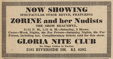 Despite this concern for morality, The Star had a special relationship with the city’s burlesque houses. Local burlesque girls were frequently featured on the paper's front page. The Lyceum in the early 1930s, Esther’s, Arabian Gardens, Gay 90s, and the Parisian Revue in the later 1930s and 40s, and the Gayety in the 1940s and 50s figured prominently but they even had strip revues down at the RKO Palace and other respectable venues. When pretty peelers were taking it off, The Star could be counted on to print photos, run ads, and work up an article.