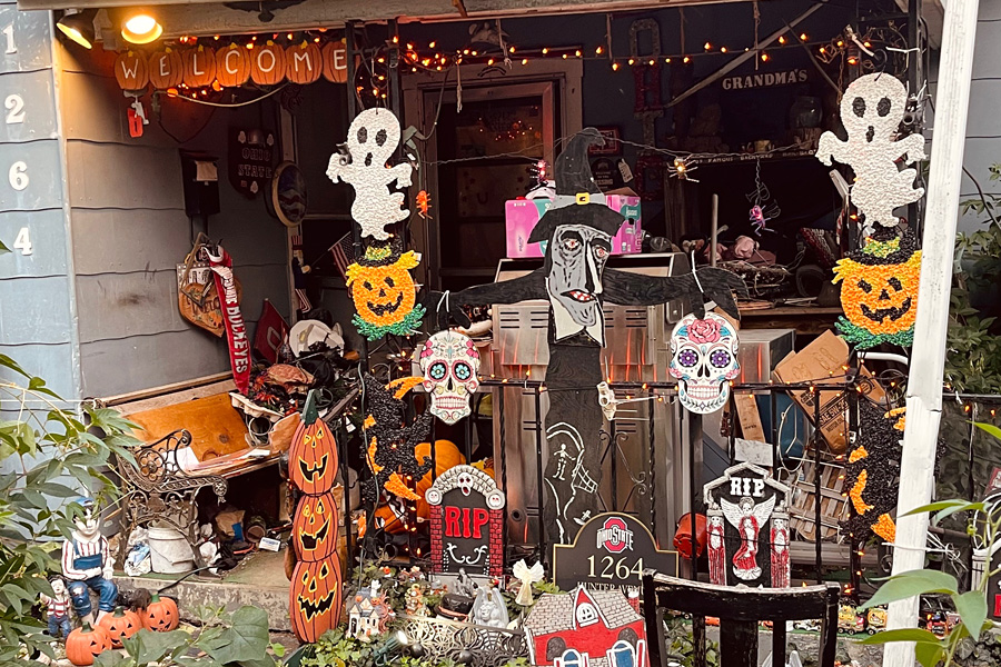 Masked Brutus Buckeye in the lobby of the Ross Heart Hospital 18 months after the pandemic began. 18 MONTHS.