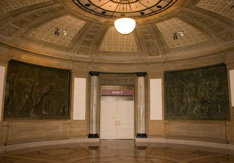 In consultation with a Memorial Committee of local worthies, Ohio State University’s architect, Joseph N. Bradford, designed the memorial. It would consist of an elegant rotunda with marble floors and walls and an art glass ceiling. Large bronze bas-reliefs would line the walls depicting scenes from the war. Visitors to the new wing would enter through the rotunda. Outside the door would stand a bronze statue depicting an American soldier of the war.